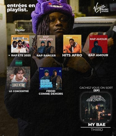 Les titres My Bae et So Sad x Vagues du Roi THIIRD ne cessent de faire parler d’eux. Enchaînant les placements dans les plus grandes playlists internationales, ces morceaux s’imposent désormais comme de véritables hymnes de la nouvelle génération afro-urbaine.:
